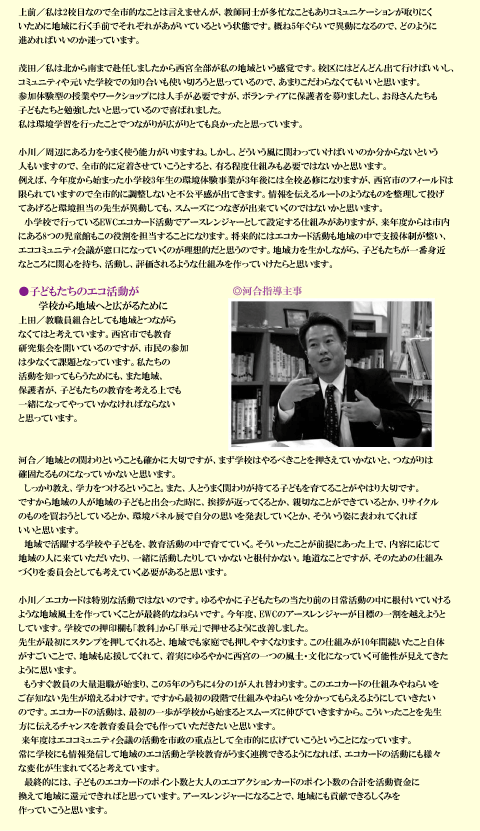 | 平成19年度 第3回 西宮市持続可能な開発のための教育(ESD)推進協議会 |
